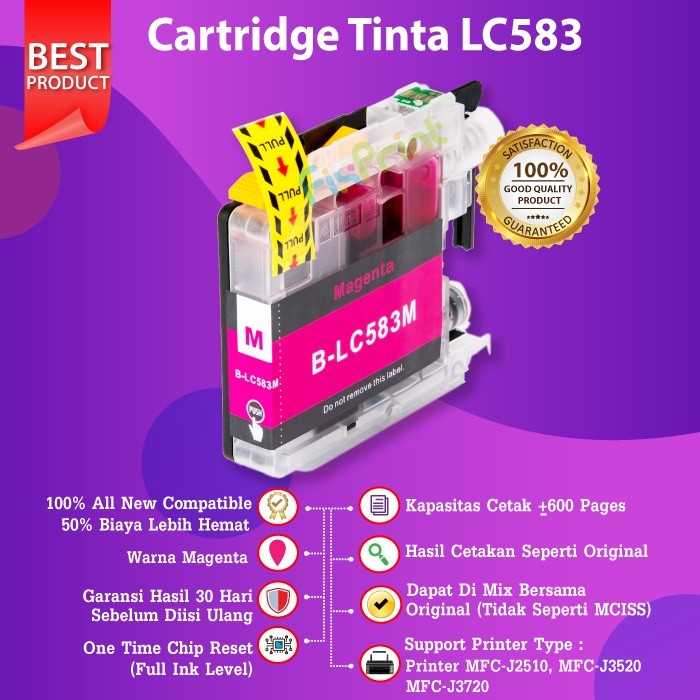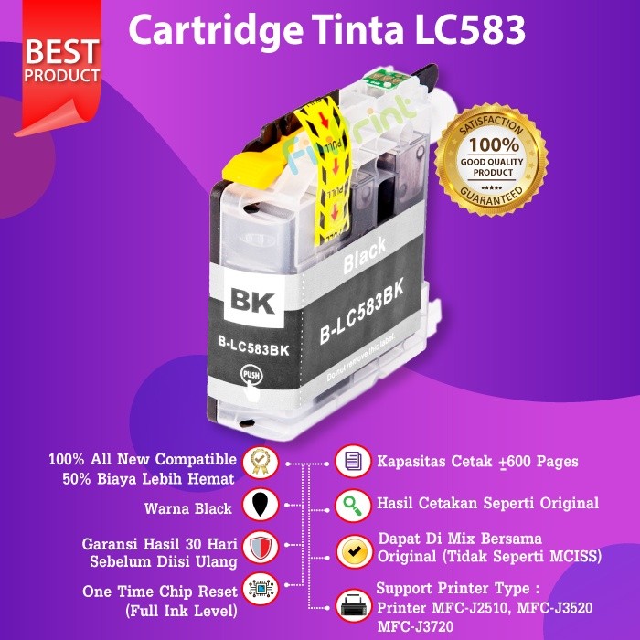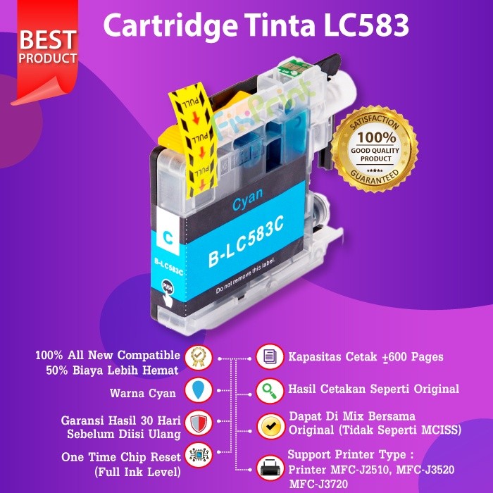 FixPrint Cartridge Tinta Brther LC583 LC-583 Compatible MFC-J2510 MFC-J3520 MFC-J3720 Black Cyan Magenta Yellow