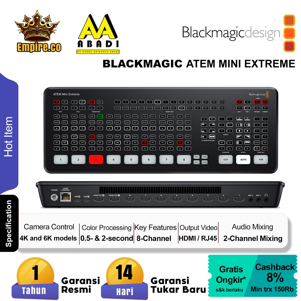 Blackmagic Design ATEM Mini Extreme Mixer Live Streaming 8 Input HDMI