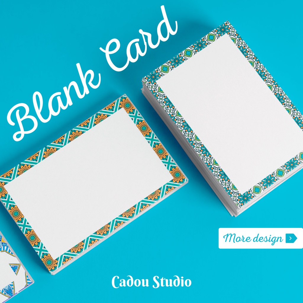 Blank Card / Kartu Ucapan / Greeting Card / Gift Card Motif Batik Biru Pattern Custom Aesthetic
