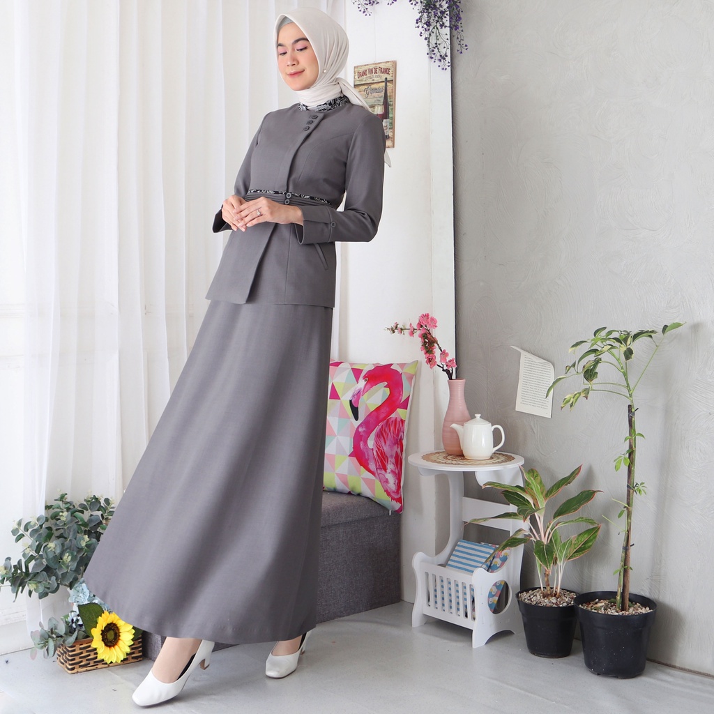 Blazer Wanita / Seragam PNS ASN / Baju PNS Wanita Motif Batik / Baju Guru Wanita - 7007 Abu Muda