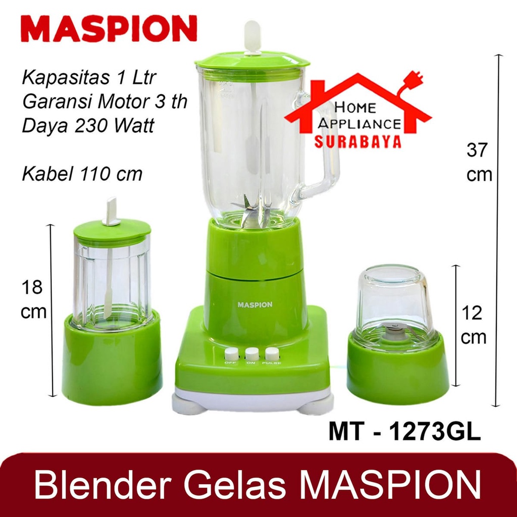 Blender Maspion Kaca Kapasitas 1 Liter 3 IN 1 MT 1273 GL / MT-1273 GL