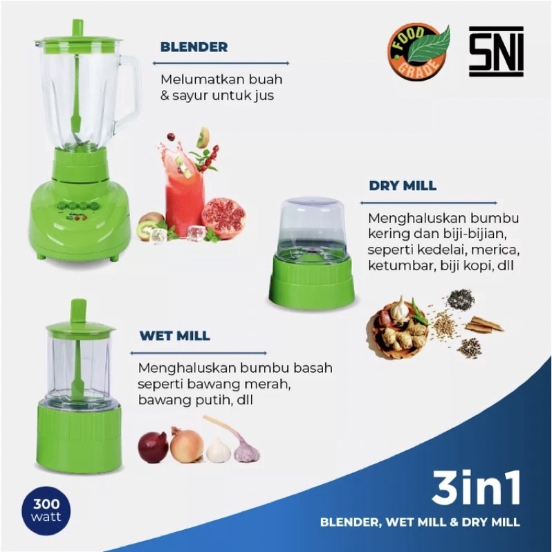 Blender Miyako Kaca 3in1 BL-152 GF Hijau 1.5 Liter