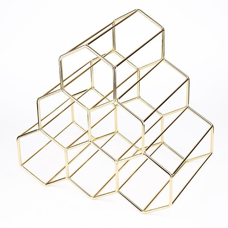 Blesstenia - Tempat Wine Rak Botol Stainless Gold Honeycomb Wine rack 6 Bottles