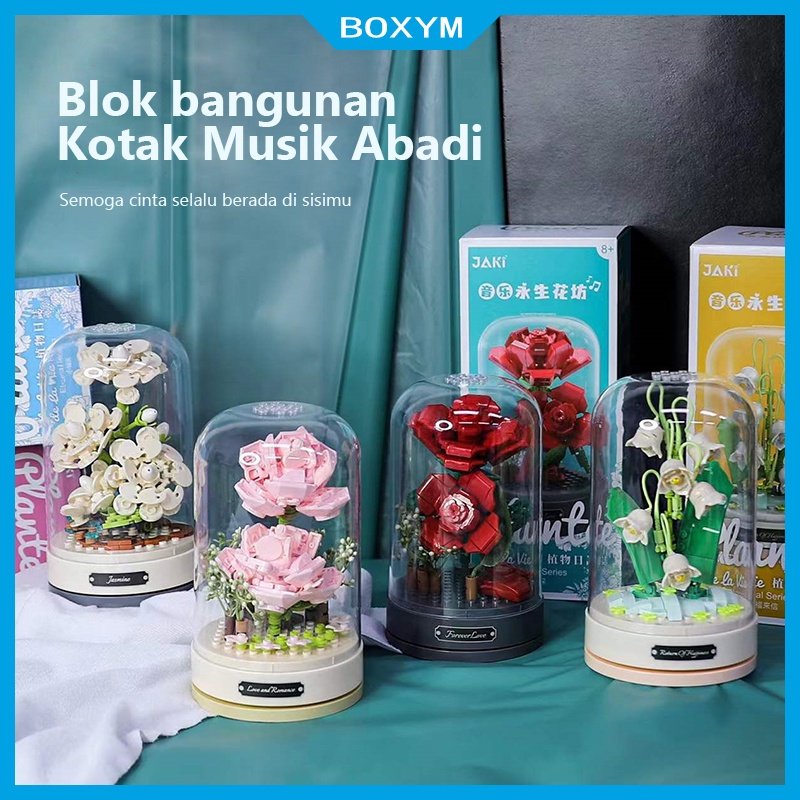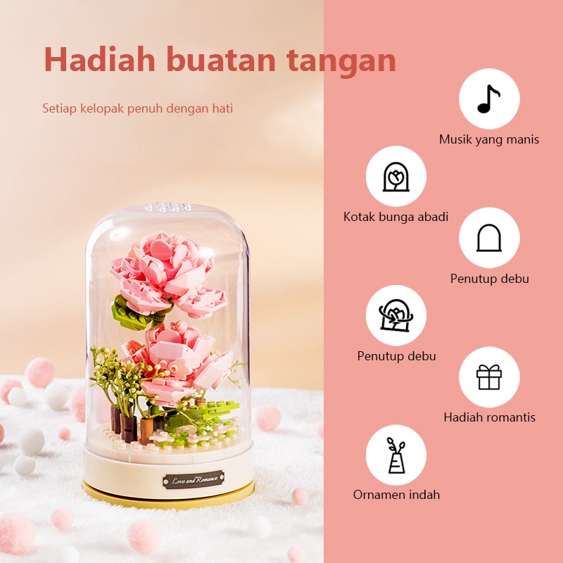 Block Flower Mainan Kotak Musik DIY Block Blok Bangunan Bata Bunga Mawar Hadiah Hari Valentine
