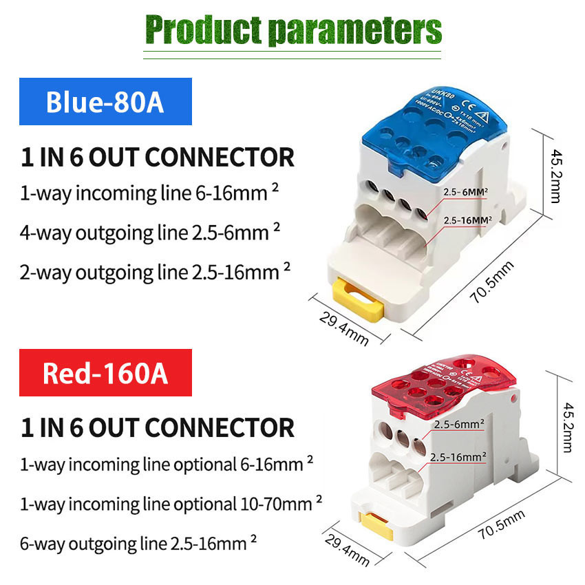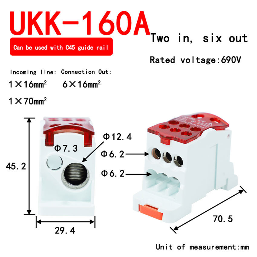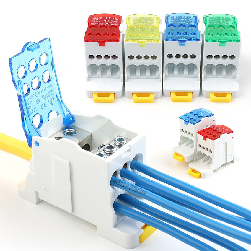 Blok Terminal Konektor Ukk 80A Ukk 160A Distribution Box Din Rail Terminal Block Junction Box 80A 160A / Kotak sambungan 1 masuk beberapa keluar blok terminal rel DIN konektor kabel kotak distribusi UKK80/160A