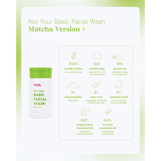 Bloomka Not Your Basic Facial Wash (Matcha / Rose)