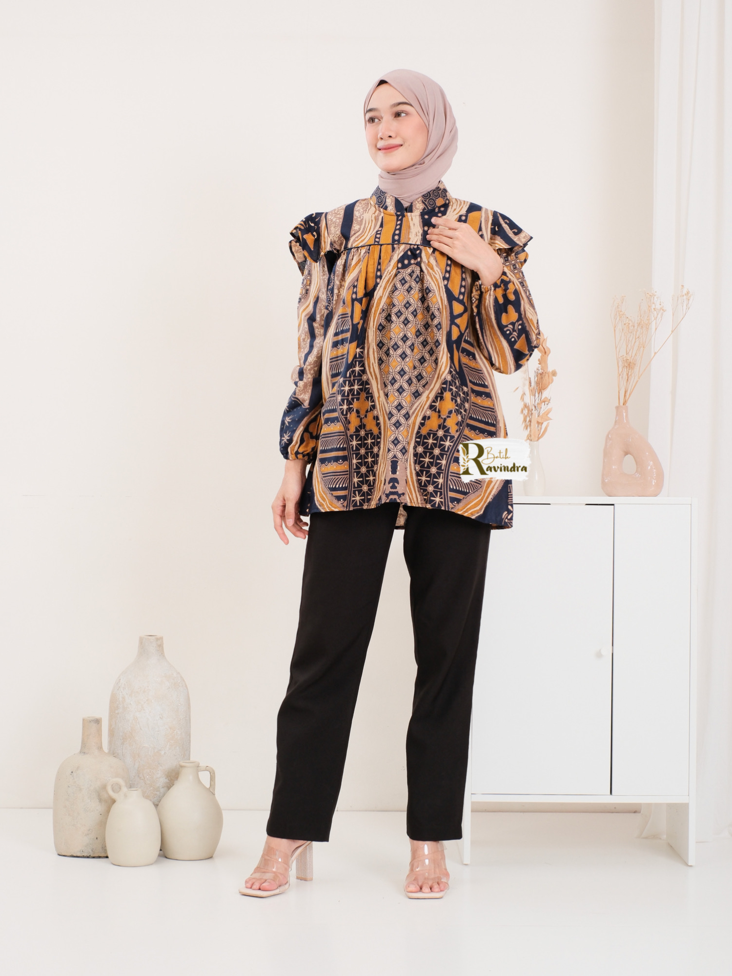 Blouse Batik Kuning Navy