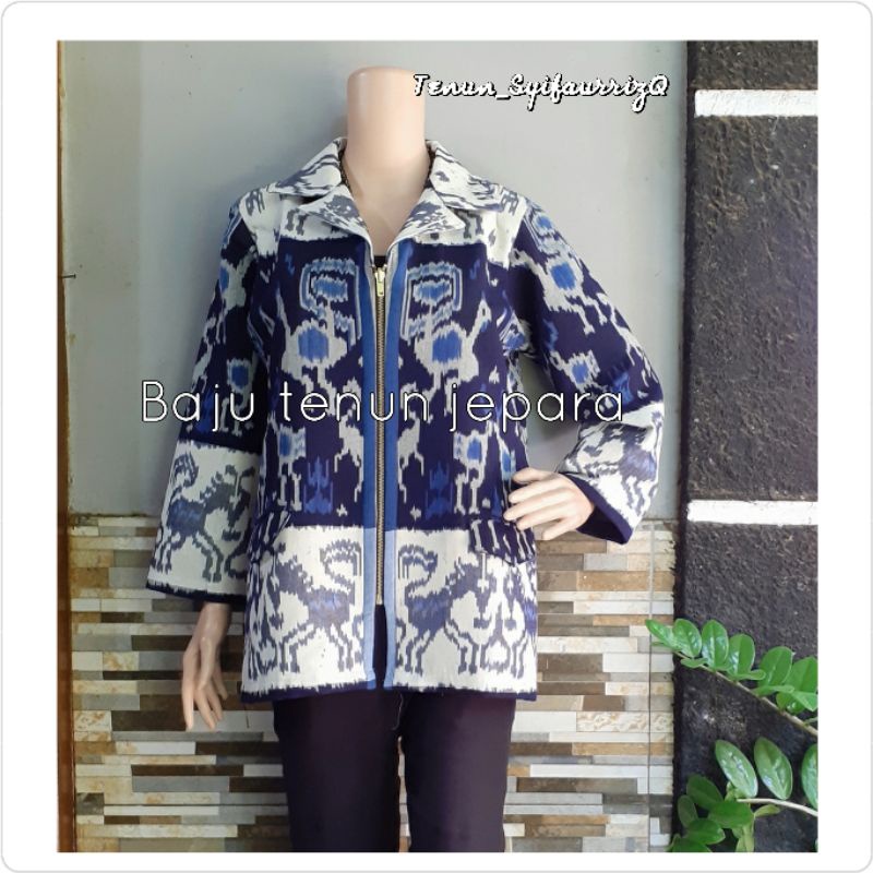 Blouse tenun blazer tenun jepara baju tenun jepara resleting jaket rompi tenun BTB31