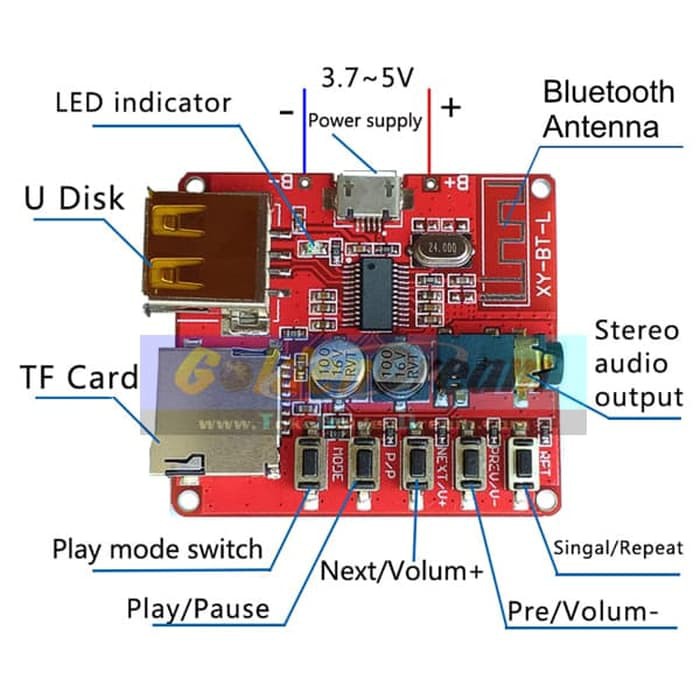 Bluetooth Mp3 Player Music Song Audio Flashdisk SD Card HP Wireless Merah