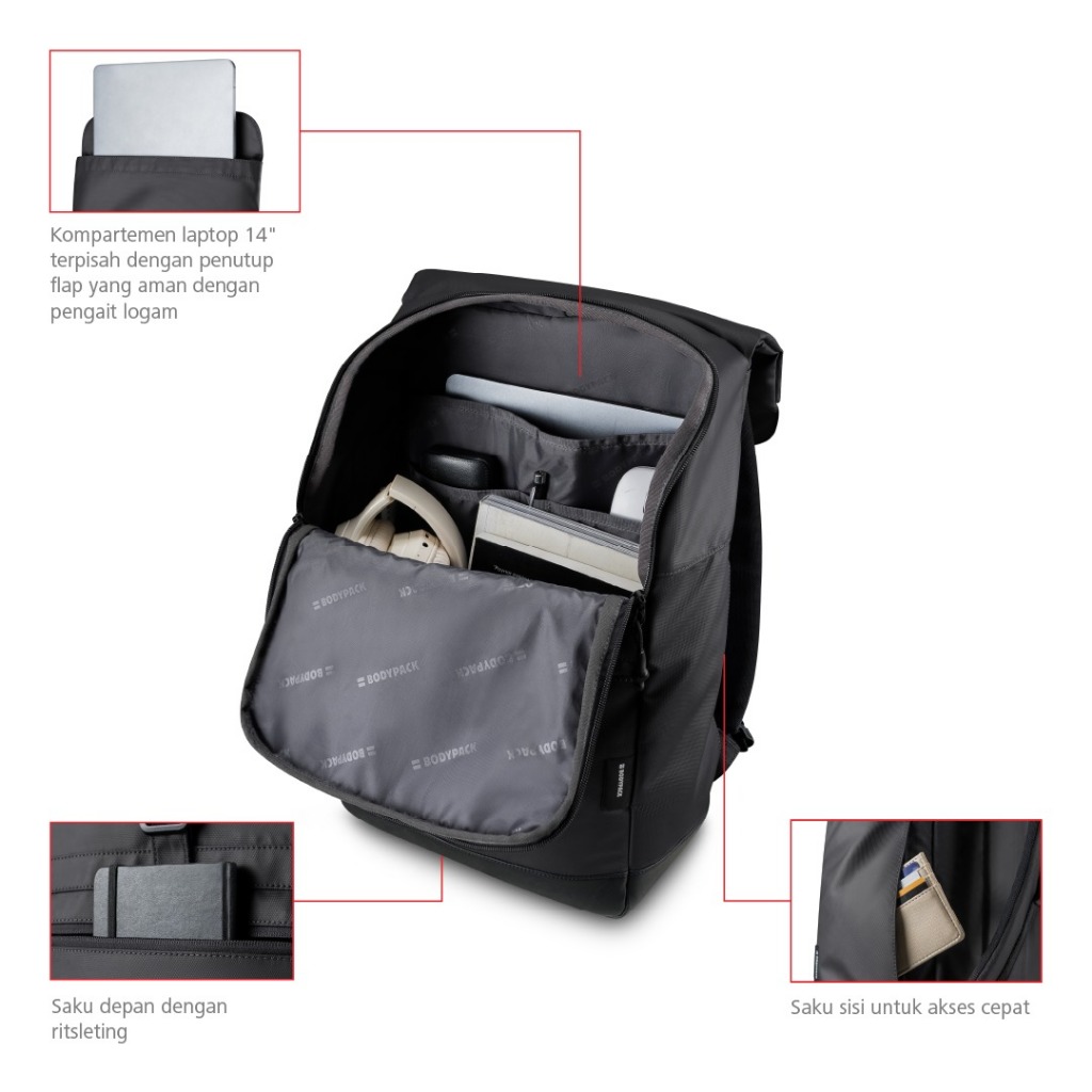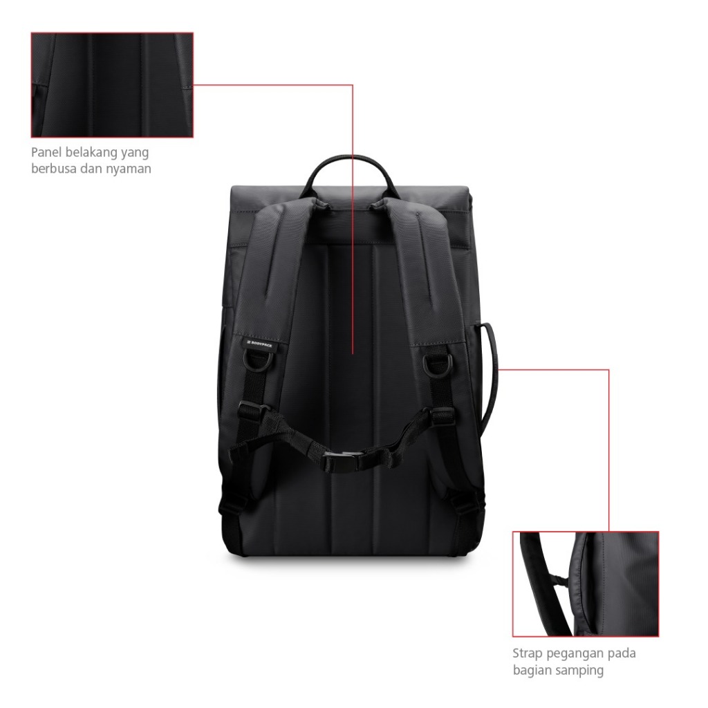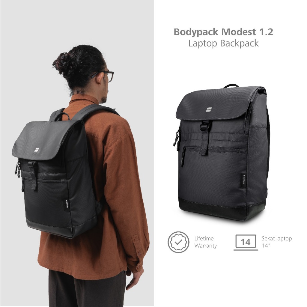 Bodypack Modest 1.2 Laptop Backpack 15 Inch Tas Ransel Kerja Kuliah Sekolah Harian - Black