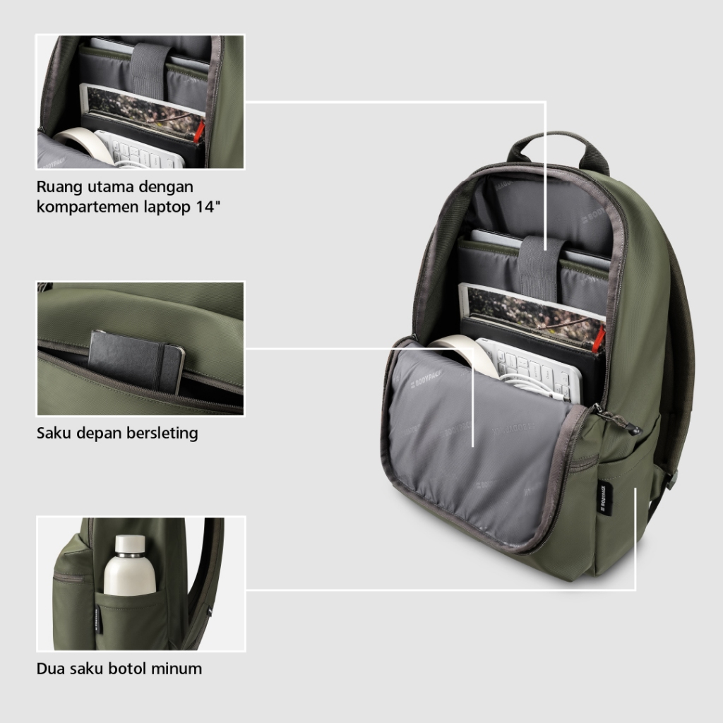 Bodypack Paris 2.1 Laptop Backpack Tas Ransel Kerja Kuliah Sekolah Durable Tahan Air - Olive