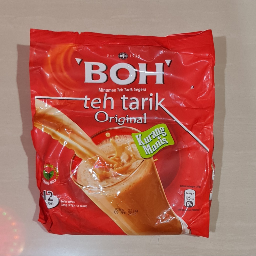 Boh Teh Tarik Original Less Sweet / Kurang Manis / Less Sugar 12 x 27 Gram