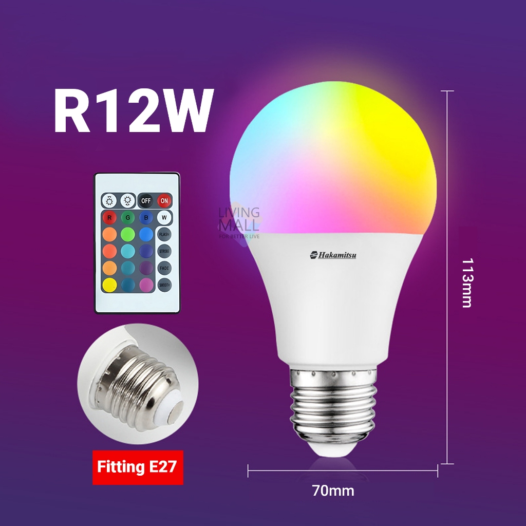 Bohlam LED RGBW 7 Watt Remote Control 16 Warna Dimmable / Lampu RGB LED Bulb / Warna Warni E27