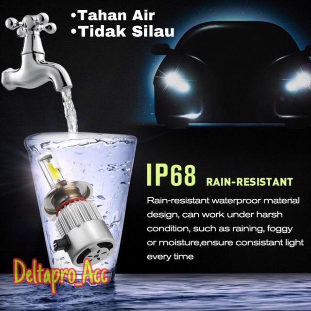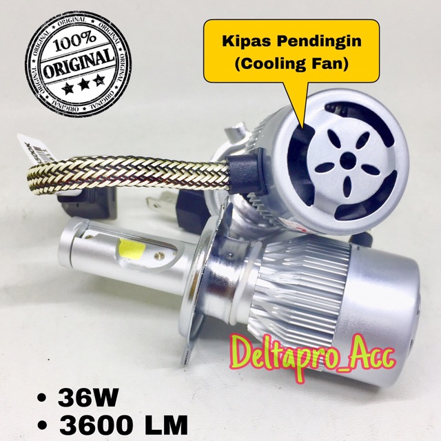 Bohlam Led Headlight H4 C6 Turbo Black Untuk Lampu Utama H4 Mobil Super Terang Premium Quality