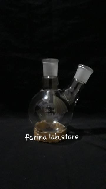 Boiling Flask 2 Neck-Labu Didih 2 Leher 250ml Ns tengah 29/32, Ns samping 24/29 Pyrex Class A