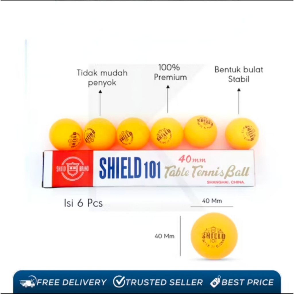Bola Pingpong Shield 101 Bola Tenis Meja isi 6 pcs - Kuning