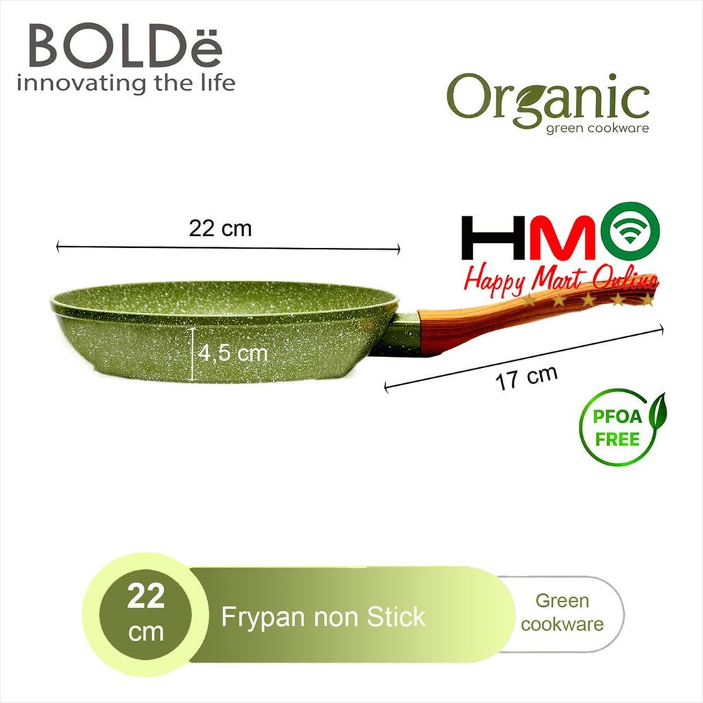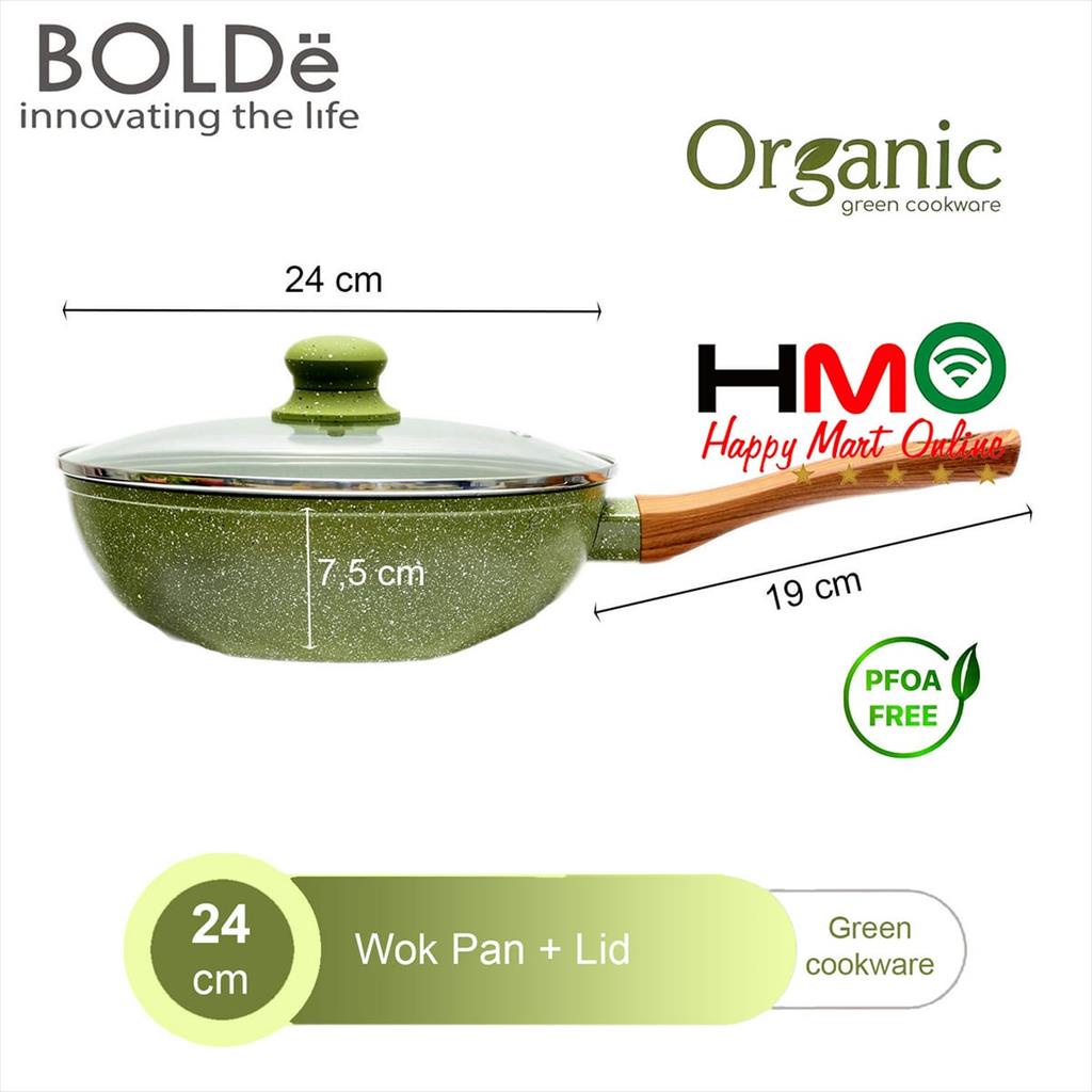 Bolde Organic Green Pan Set 5 Pcs Panci Wajan Anti Lengket Bolde Super Pan Green Granite Coating