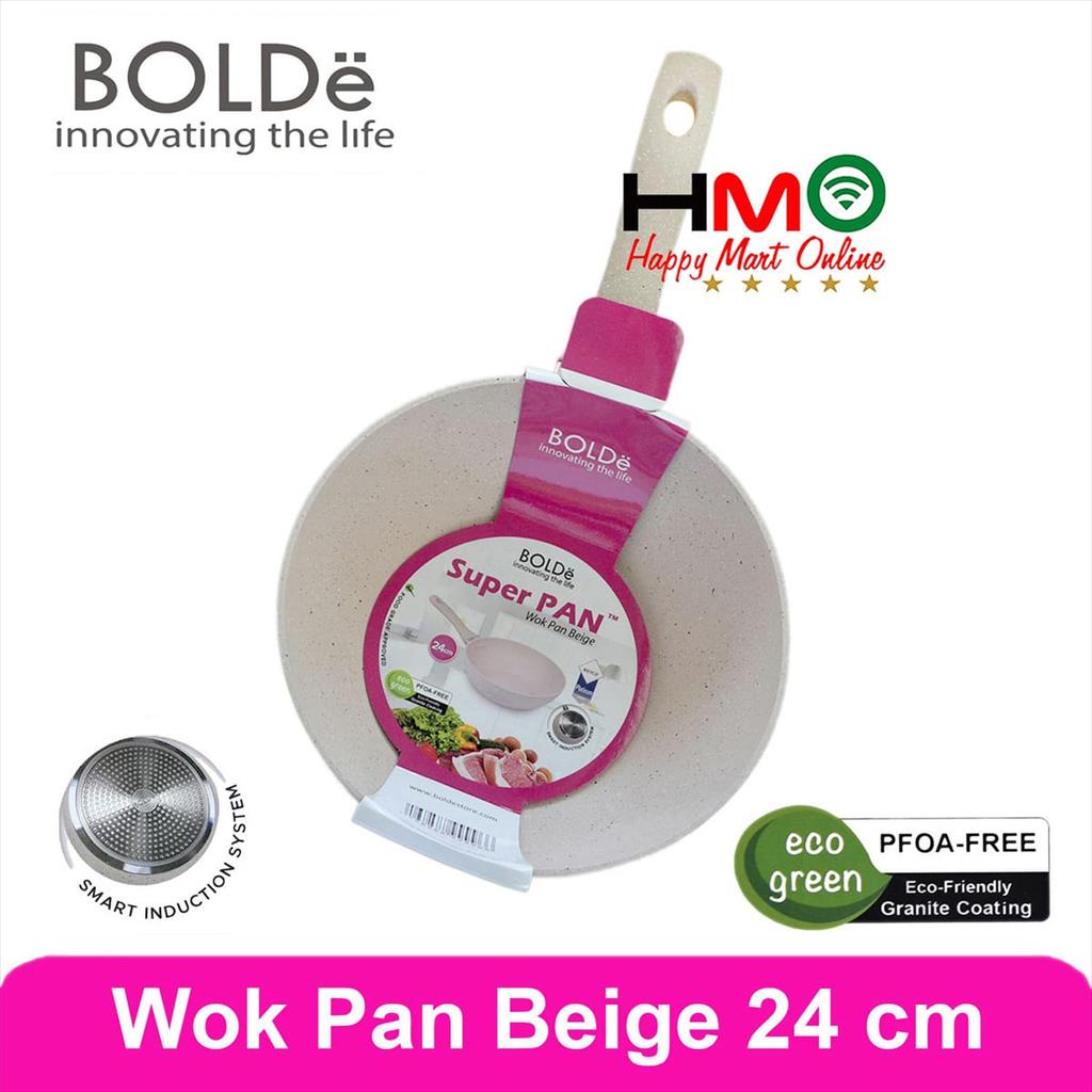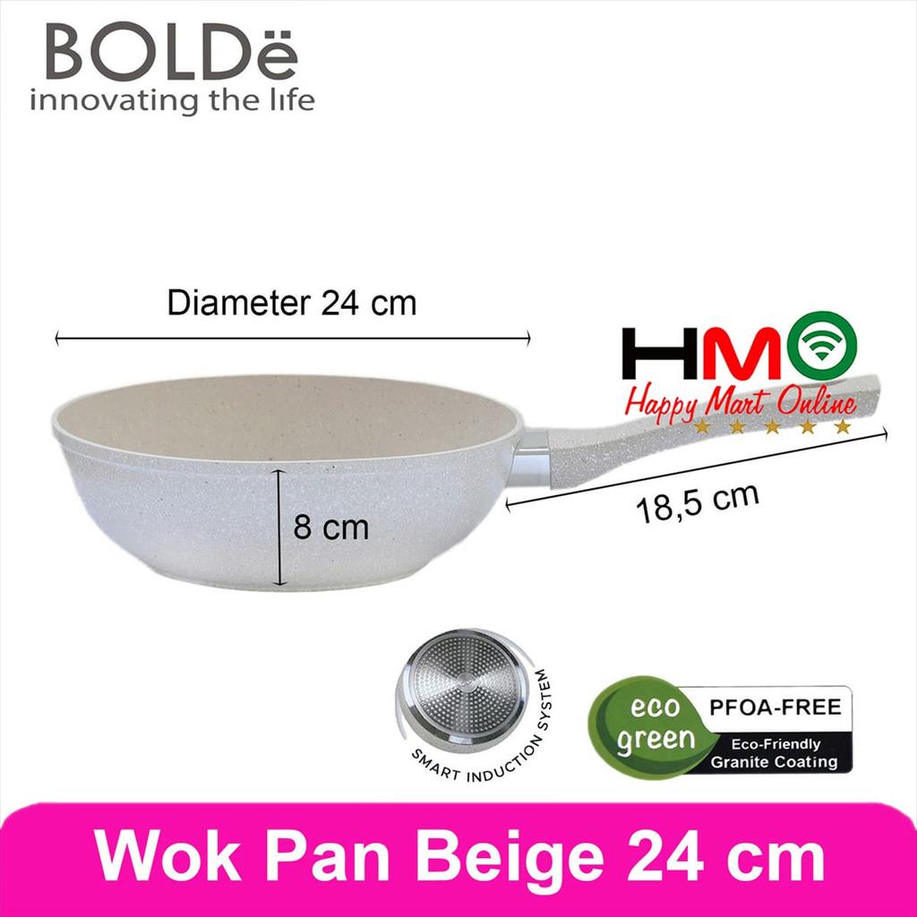 Bolde Super Pan 24 CM Wok Beige Wok Pan Anti Lengket Beige Panci Wajan Granite Bolde 24CM Wok Bolde Superpan