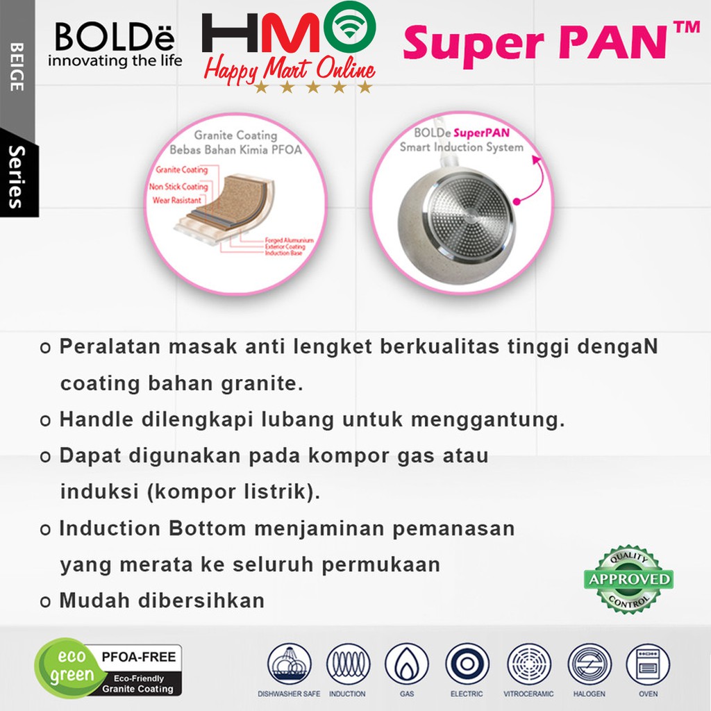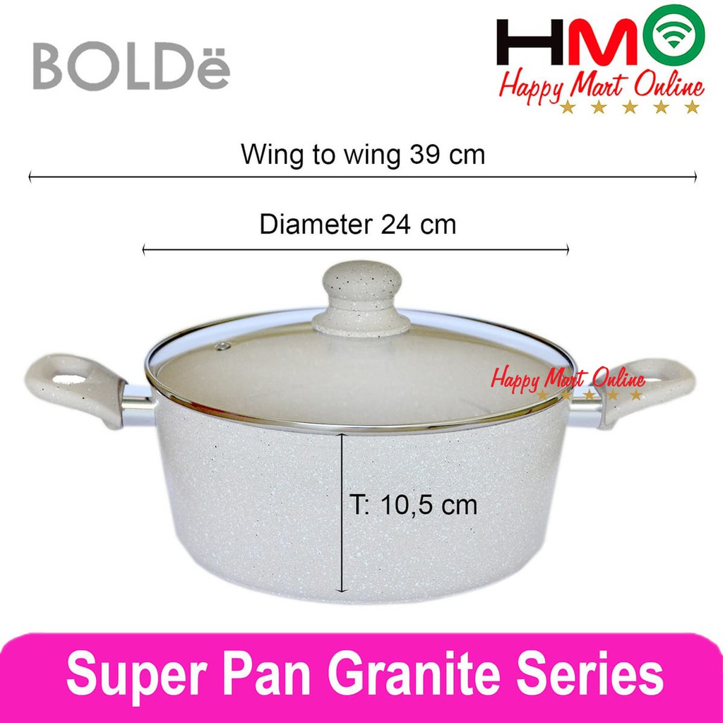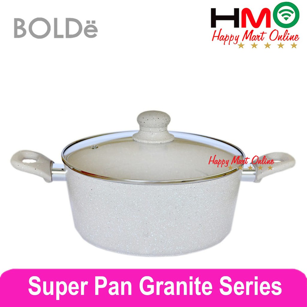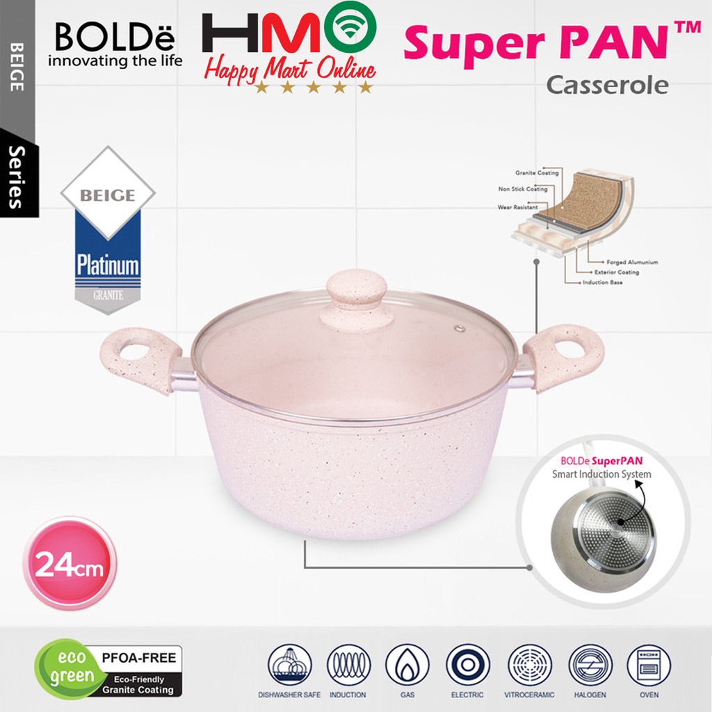 Bolde Super pan Casserole 24 CM Beige With Glass Lid Panci Kuah Granite Coating Diameter 24CM Bolde
