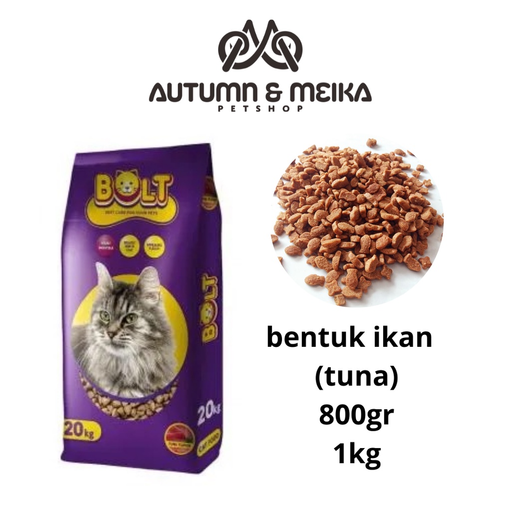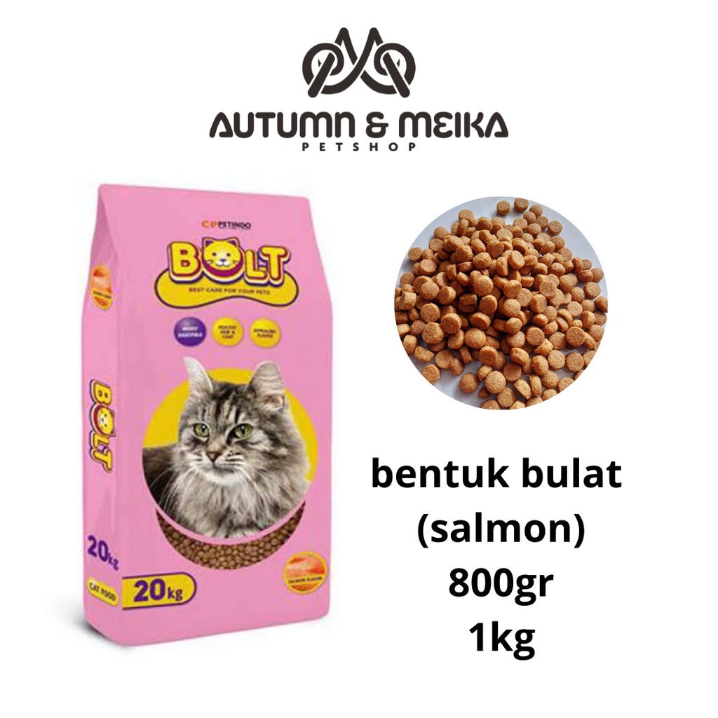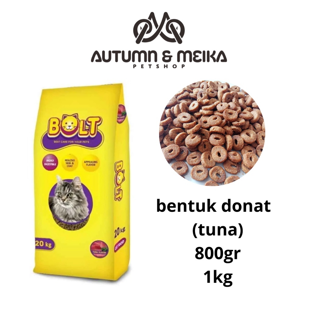 Bolt Makanan Kucing Bolt Tuna & Salmon Bolt Ikan / Donat / Bulat Makanan Kucing Kering 800gr