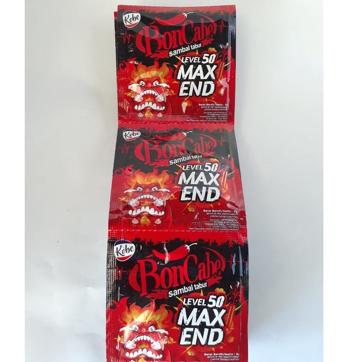 Bon Cabe BONCABE MAX Level 50, Cabe Bubuk 1 RENCENG Sambal Tabur Pedas 12 Sachet - Kemasan saset