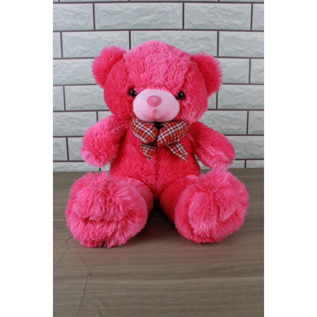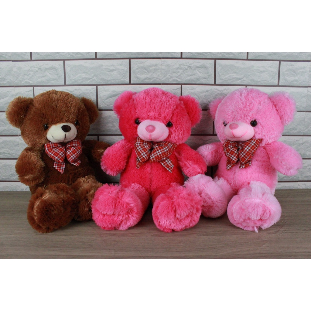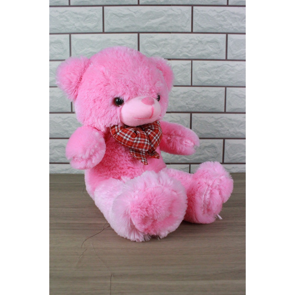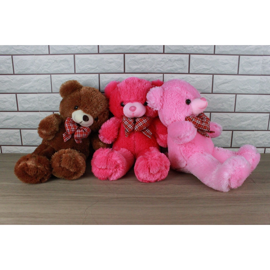 Boneka Bear Pita Kotak-Kotak , Boneka Bear Pita Kotak-Kotak Ukuran L (27cm)
