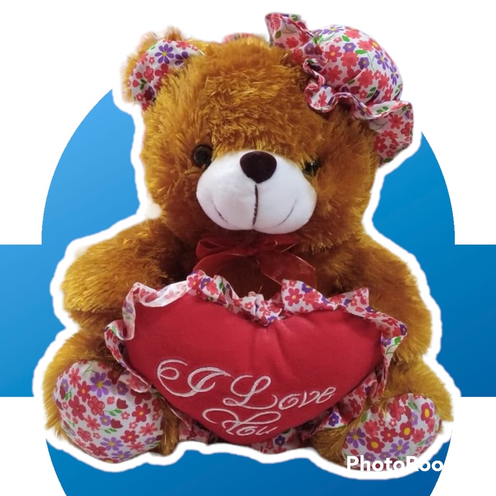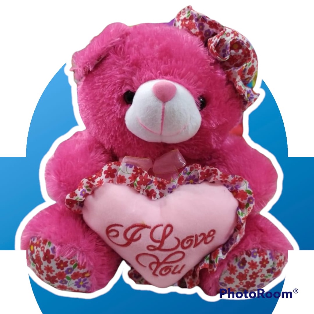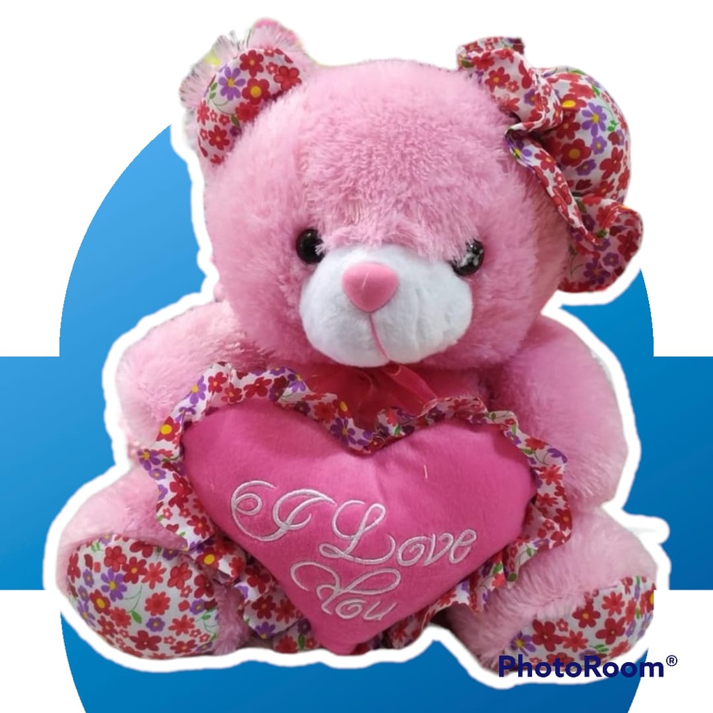 Boneka Beruang Topi Love Bunga/ Bear Topi Love Ukuran L Rasfur Halus SNI