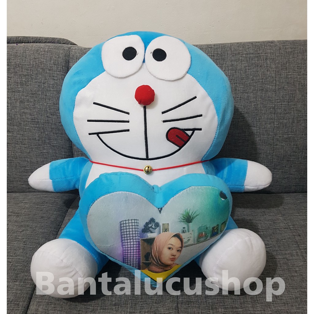 Boneka Doraemon Jumbo Love Ukir Nama / Custom foto Boneka Doraemon Custom Proses Cepat