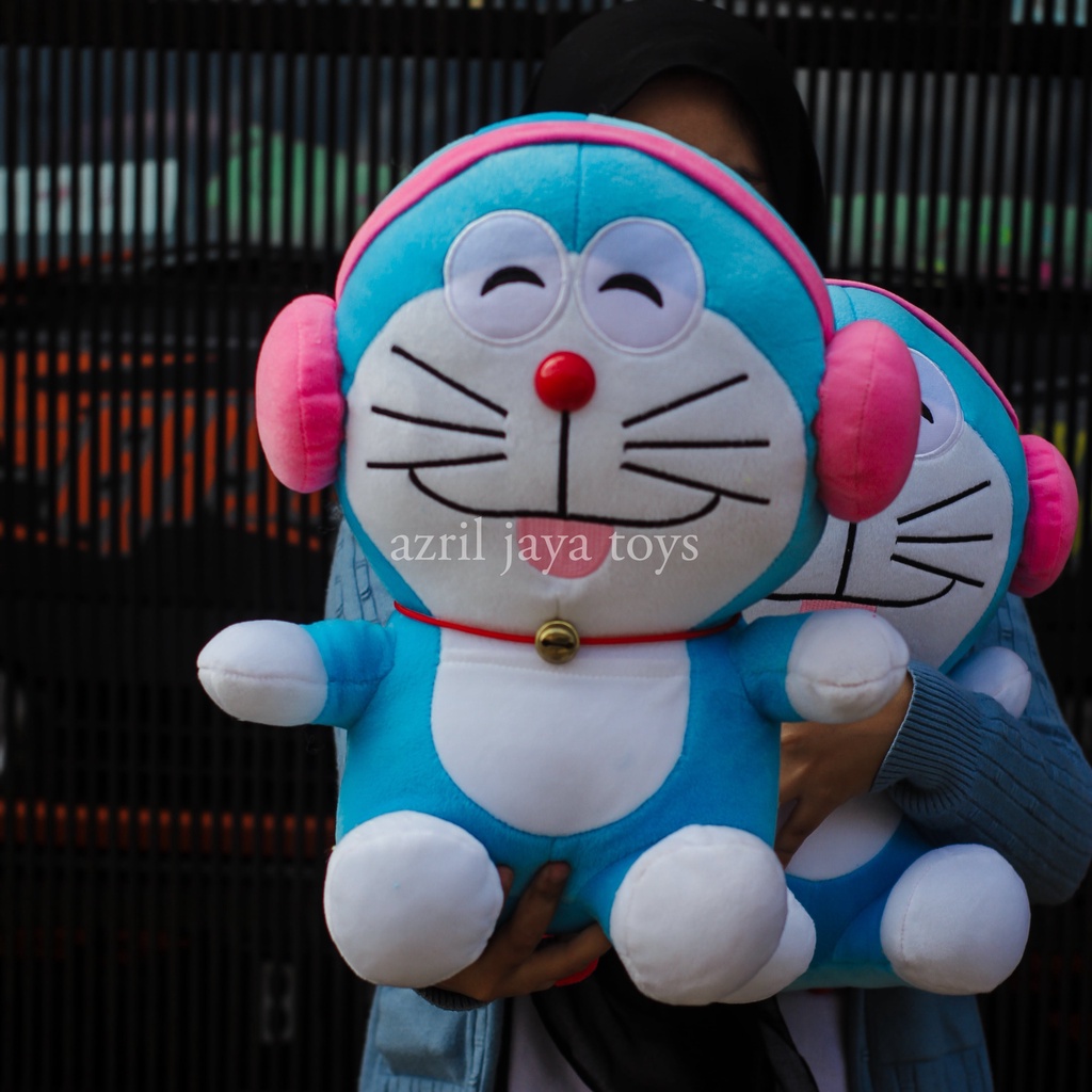 Boneka Doraemon Pake Headset Pink Ukuran m/boneka doraemon terbaru/boneka doraemon karakter lucu/boneka doraemon jumbo