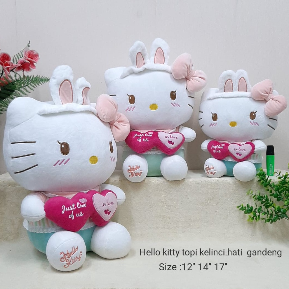 Boneka Hello Kitty Topi Kelinci Hati Gandeng 45cm kado hadiah anak kekasih ultah valentine