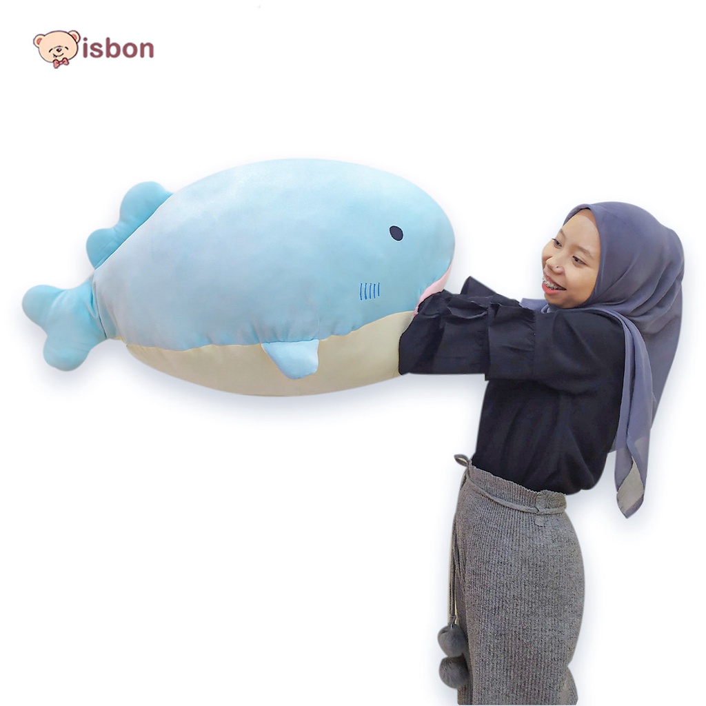 Boneka Ikan Paus WHALLY JUMBO Besar Warna Biru bantal tidur dan penghangat kaki sea fish By Istana Boneka