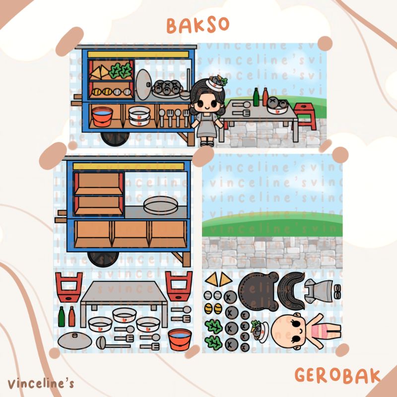 Boneka Kertas [Mini Gerobak] Mainan jadul Bp | Bongkar Pasang | Paper Doll | Mainan Anak | Mainan Kertas | Quiet Book