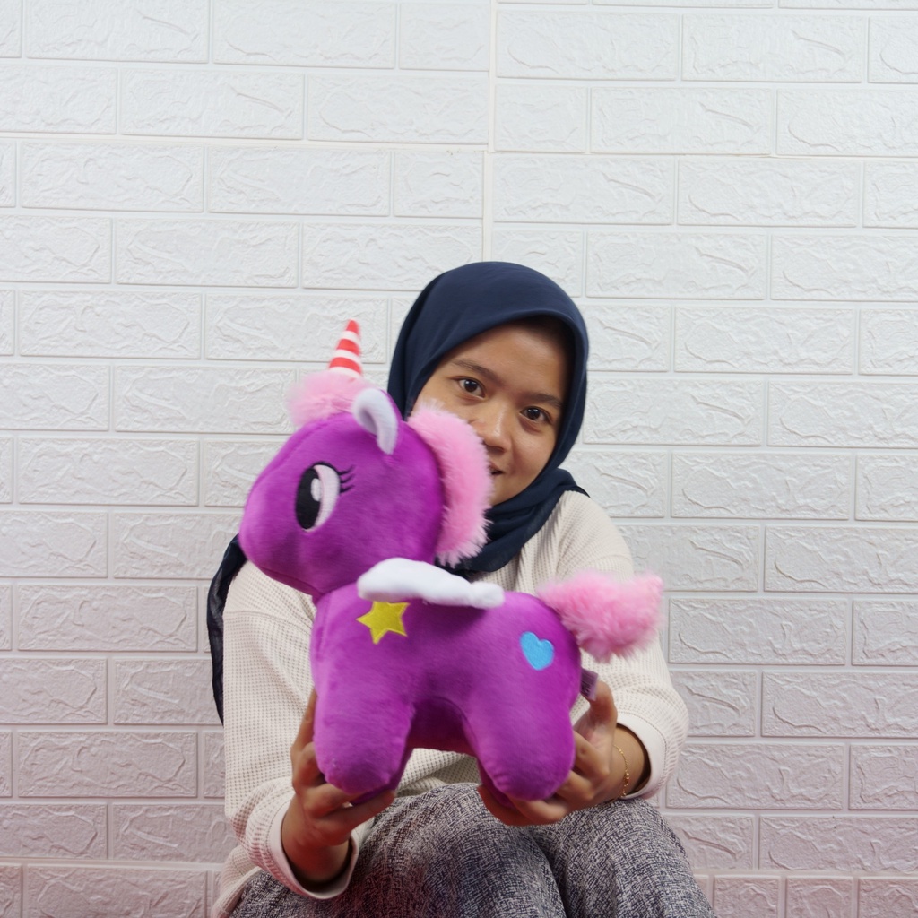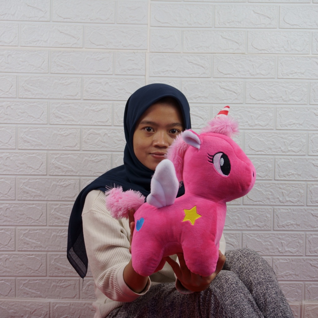 Boneka Kuda Poni Unicorn Plush Doll Bertanduk Bahan Halus Mainan Mewah Hadiah Ulang Tahun Anak