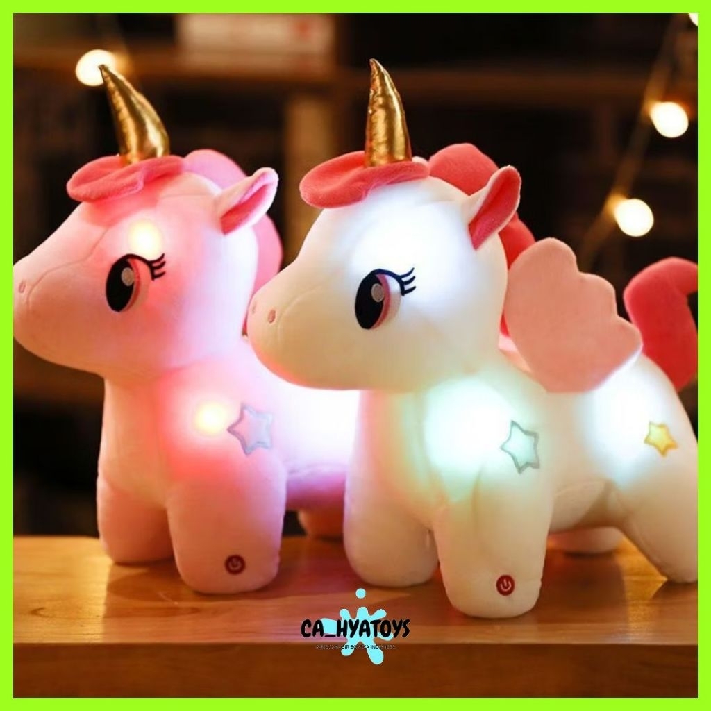Boneka Kuda Poni Unicorn Rainbow LED Boneka Unicorn Tanduk