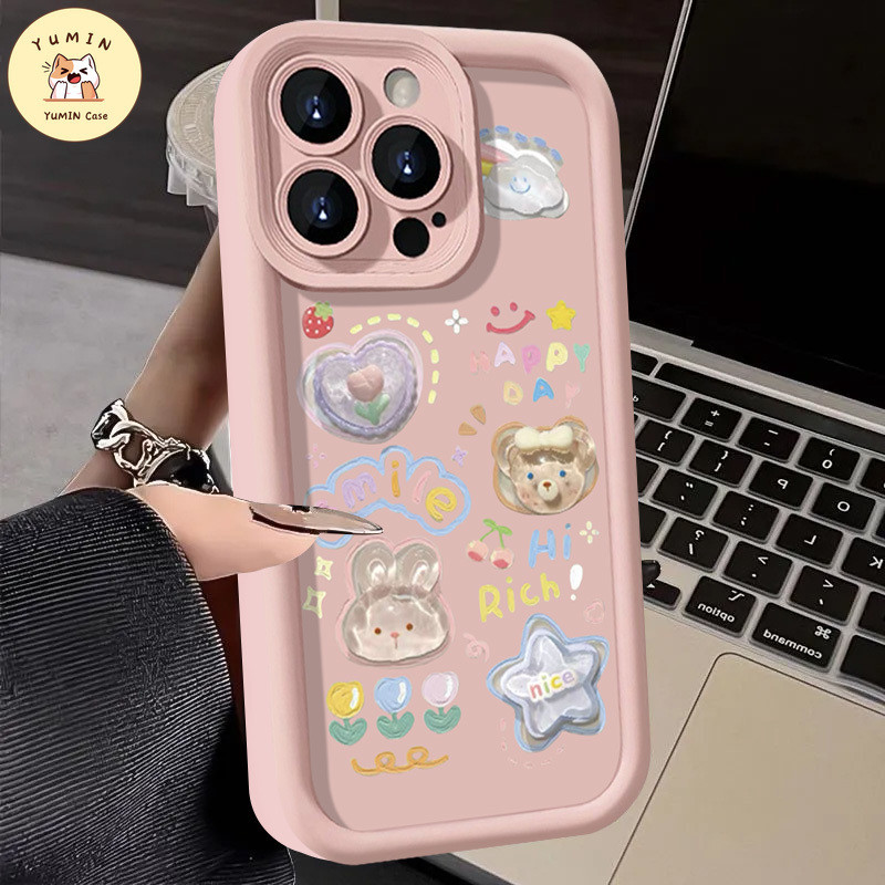 Boneka Lucu Beruang Kelinci Bintang Awan Beruang Bunga Kartun Untuk Redmi 14C 12 12C 10C 9 13C 9T A2 9A A1 9C NFC Note 13 11 10 9 12 11s 8 10s 13 Pro Max Poco X6 M3 C40 Mi 12 11 Lite Silikon Lembut Sampul belakang