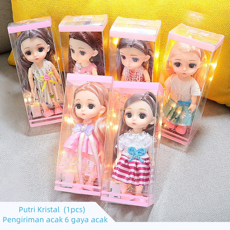 Boneka Putri 6 inci yang menyala 13 sendi ayunan Gadis boneka tangan mainan boneka tangan LED hadiah pendamping boneka gadis 18CM