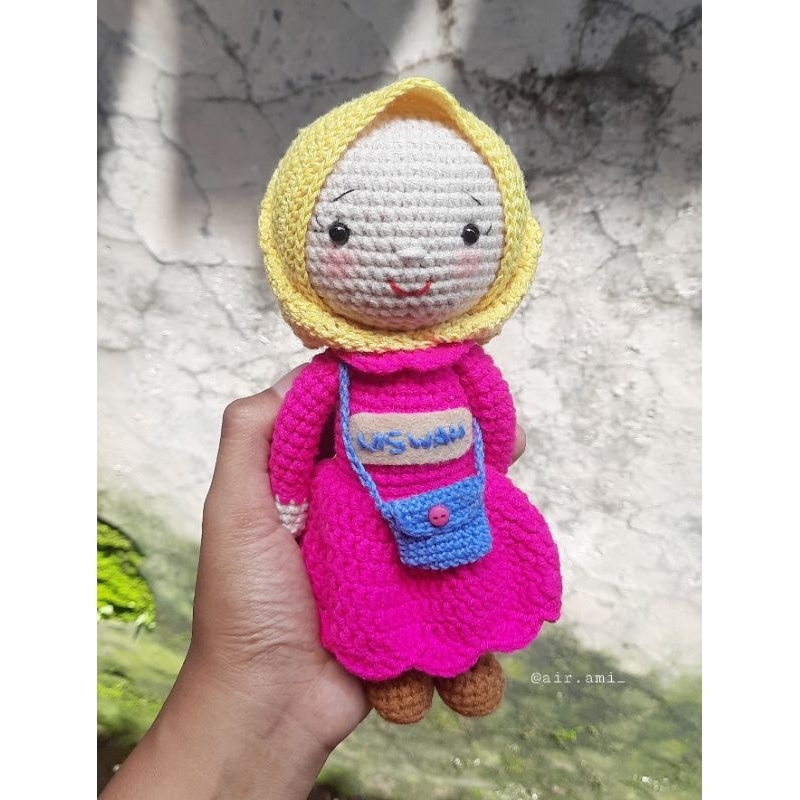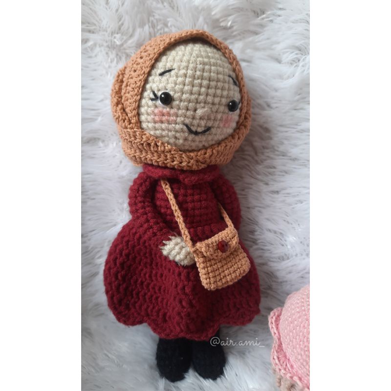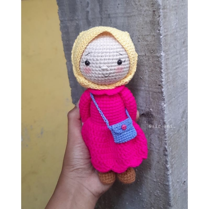 Boneka Rajut Hijab size M 20cm with milk cotton yarn ( Hijab Doll amigurumi)
