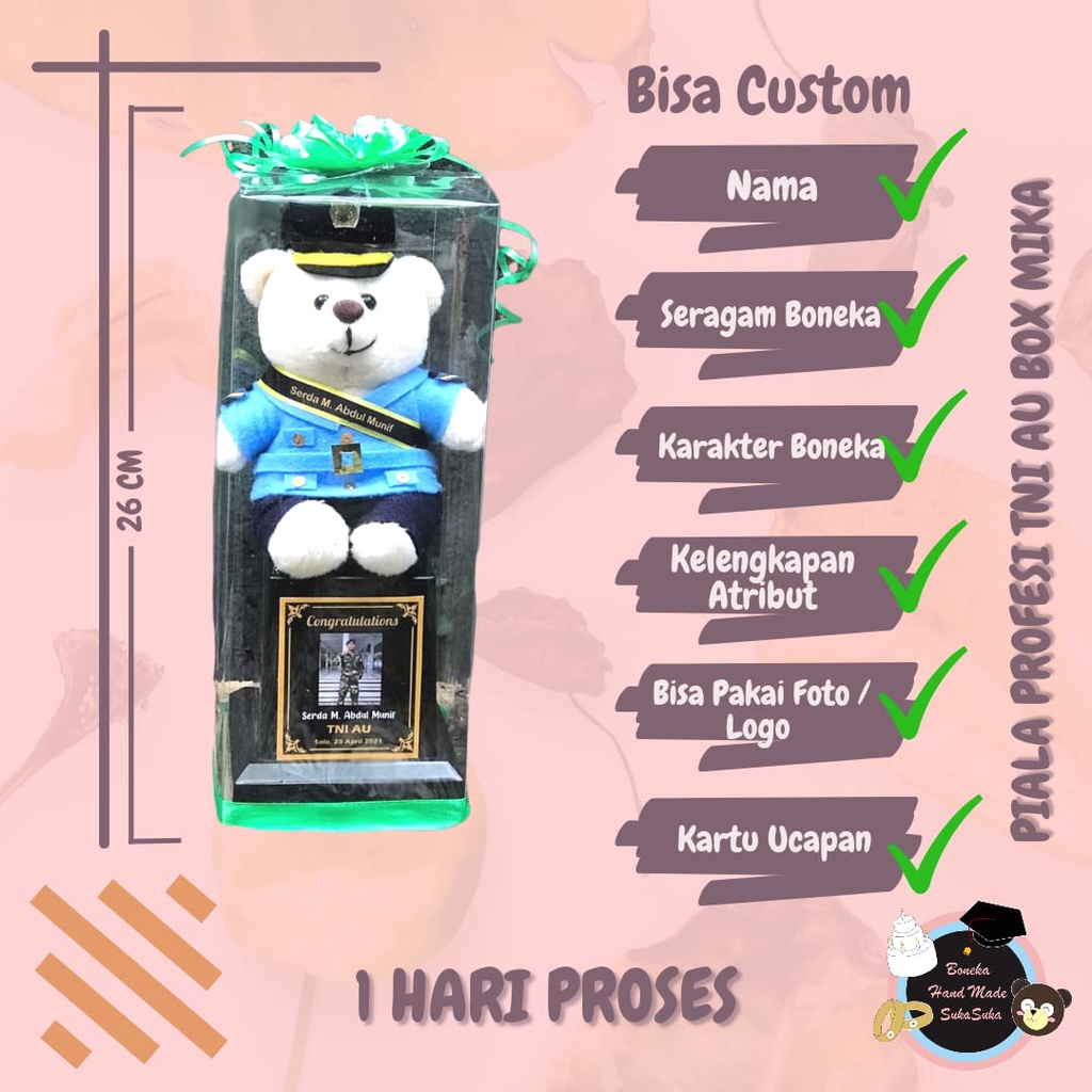 Boneka TNI AU 25cm / Piala Boneka /Pelantikan Pacar Abdi Negara Polisi / TNI AD / TNI AL / Pelayaran / Brimob / Kado Pacar Unik / Graduation Gift / Hadiah Boneka Profesi Lengkap Atribut / Proses Sehari Jadi