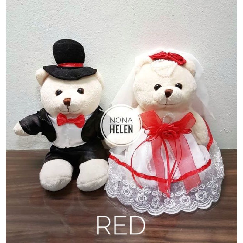 Boneka Teddy Bear wedding pengantin/boneka couple/boneka wedding/boneka beruang pasangan tinggi 20cm