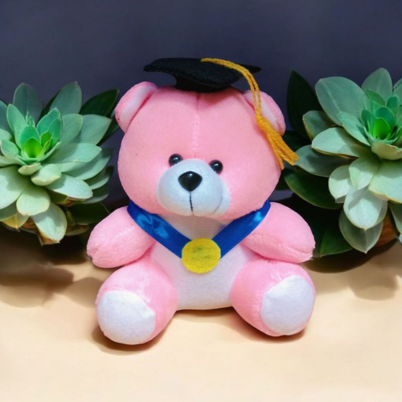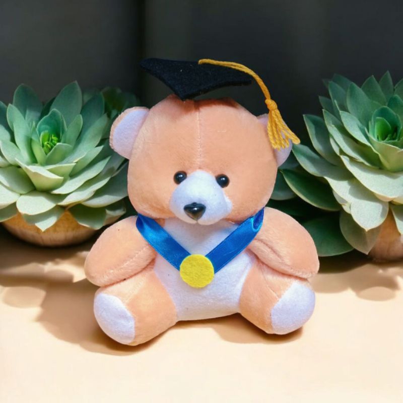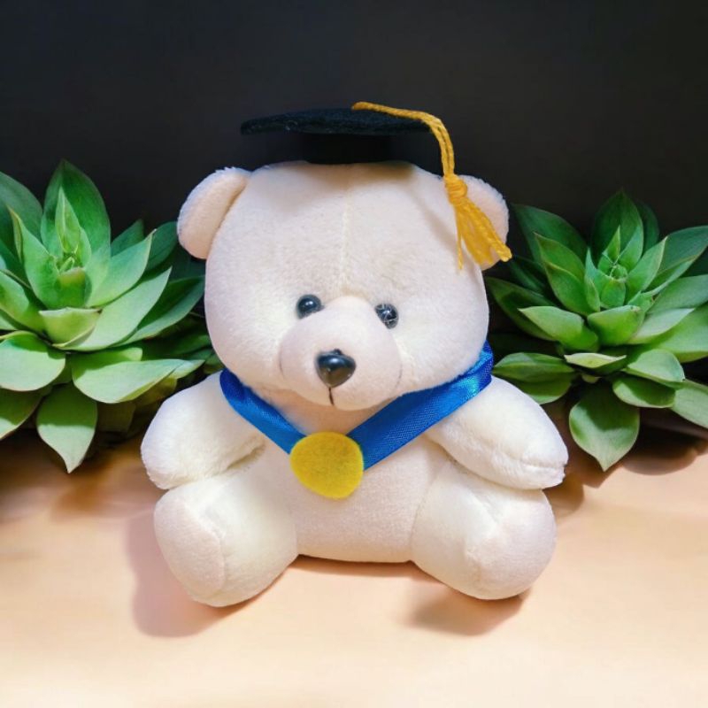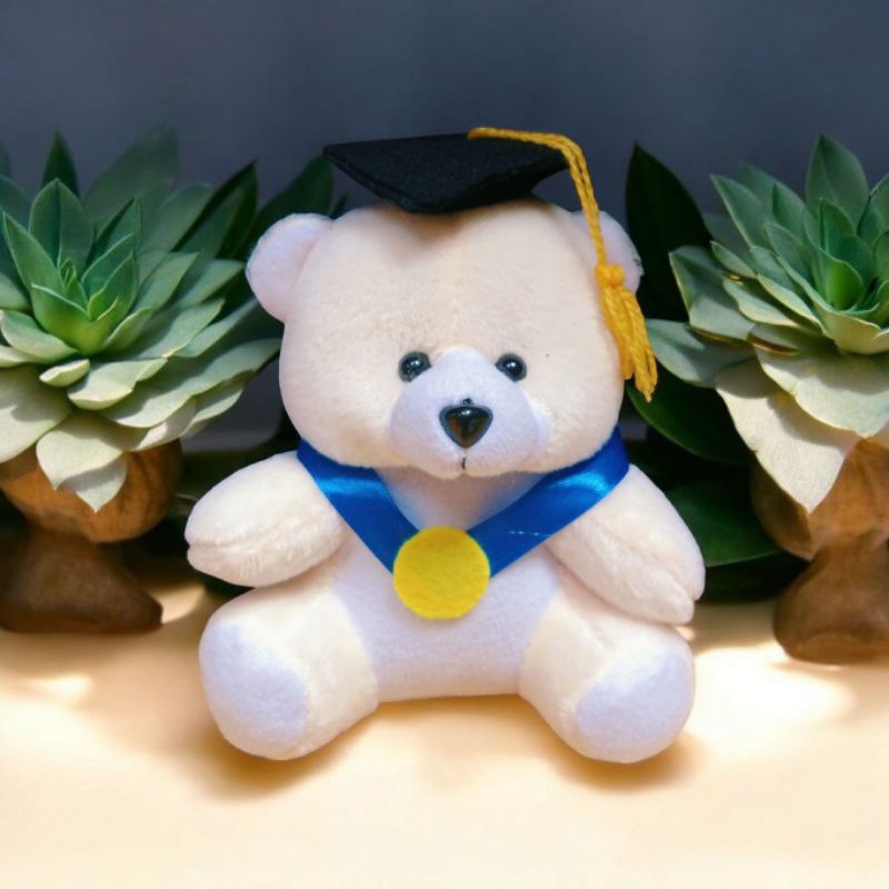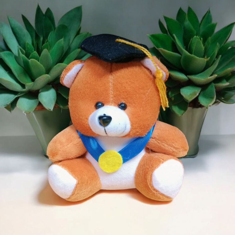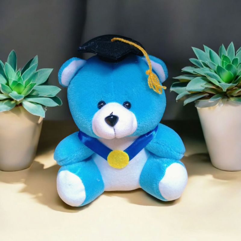 Boneka bear wisuda pita biru mendali tinggi 15cm