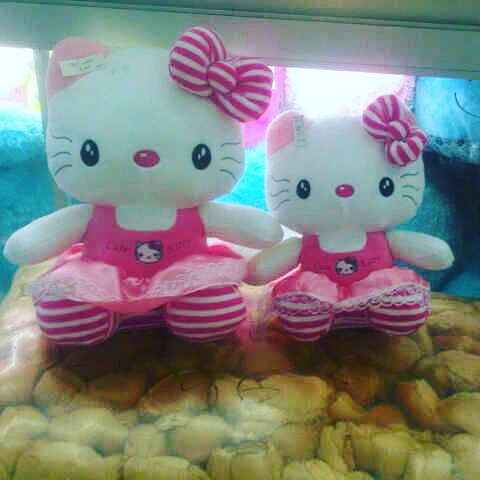 Boneka kucing tokoh kartun jepang HELLO KITTY stripe/belang pake pita