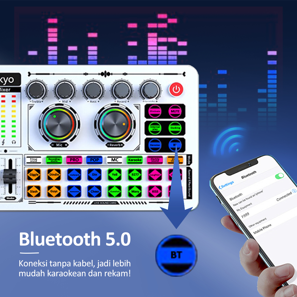 Bonkyo Soundcard F999 Bluetooth + Microphone M996 Kit - Free Headphone Included For Live Streaming Karaoke