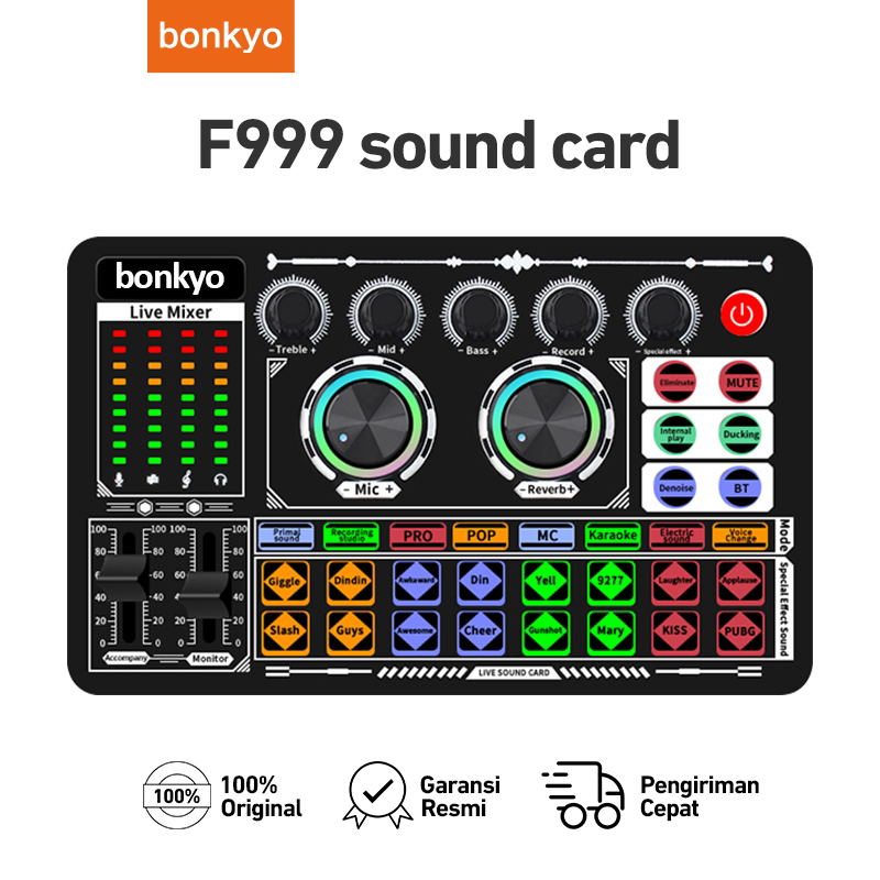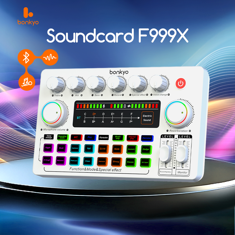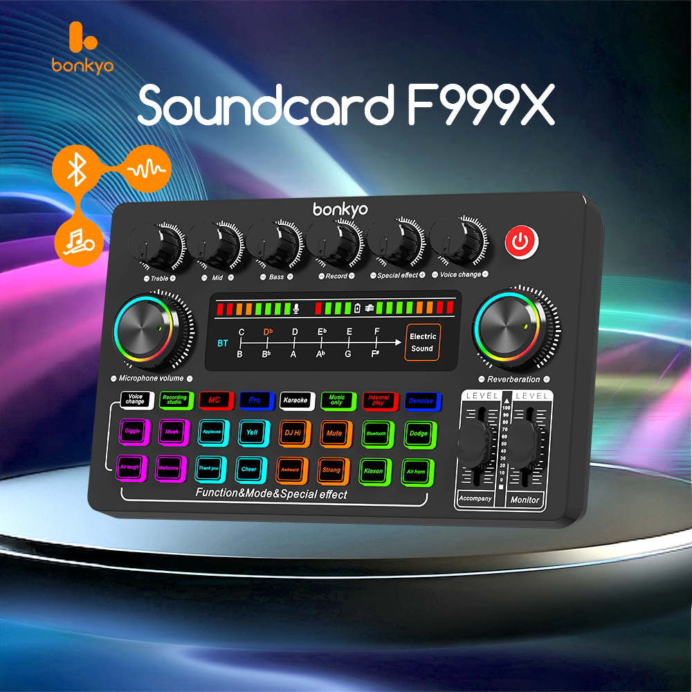 Bonkyo F999 SoundCard Bluetooth compatible External Wireless DJ Mixer Pengurangan Kebisingan untuk Streaming Langsung
