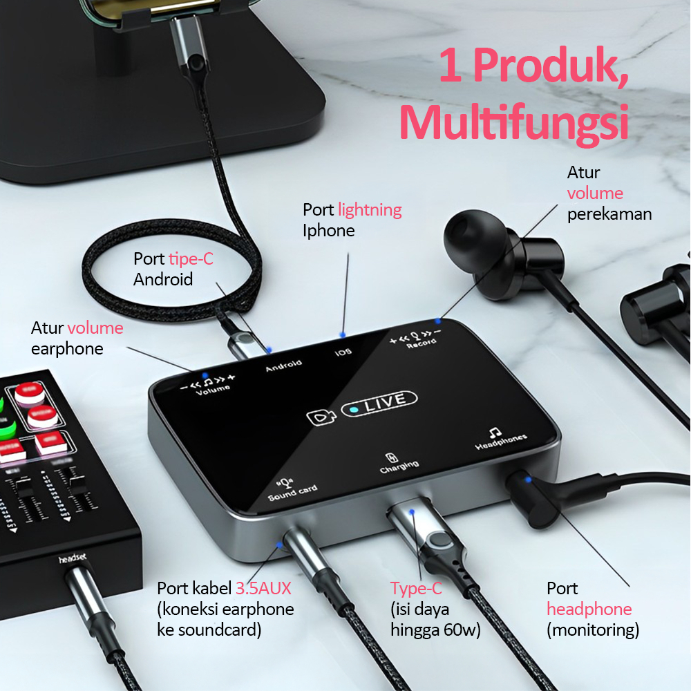 Bonkyo Live Streaming Dock Audio Live Stream Converter 2 in 1 Lightning Type C