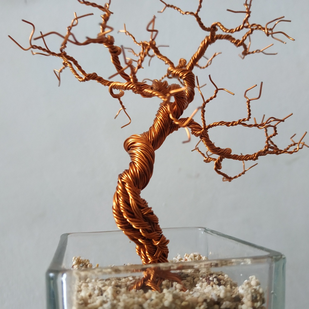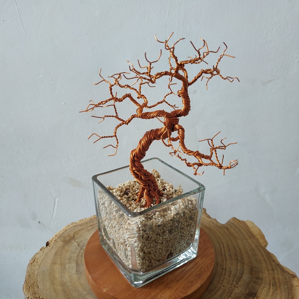 Bonsai Artificial Hiasan Dinding Pajangan Dinding Pohon Kawat Pot Kotak Kerajinan Tangan Tema Gersant Kawat Tembaga