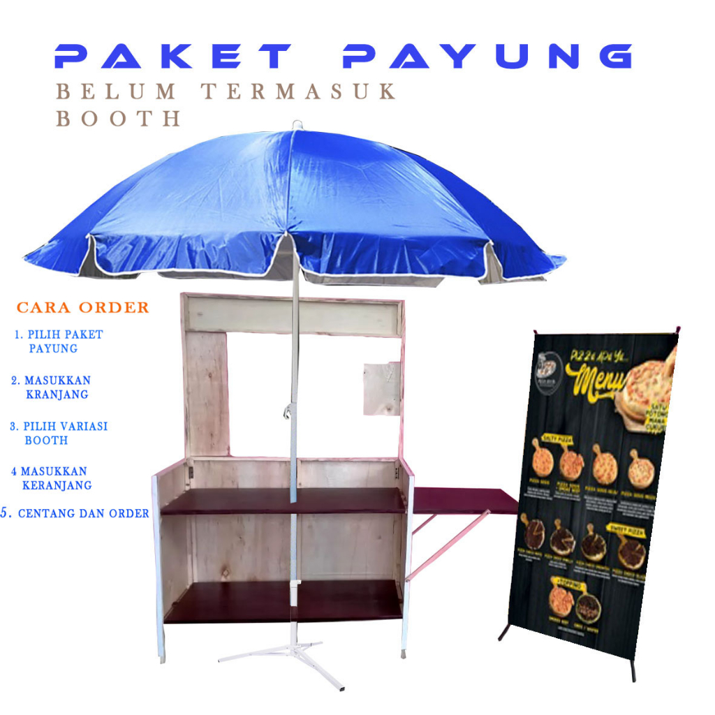 Booth Portable 140 x 50 x 175 / Gerobak Lipat / Meja Jualan Portable / Booth Lipat Ringan / Booth Makanan Minuman Minimalis/ Free Desain Sosial Media