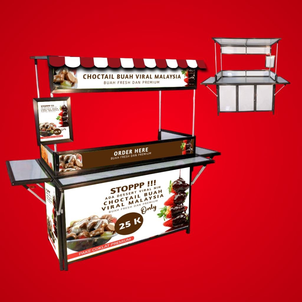 Booth Portable Alumunium / Gerobak Lipat / Meja lipat / Event Desk / Stand Jualan - JAJANAN MAKANAN KEKINIAN
