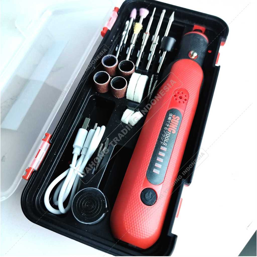 Bor Mini Drill Grinder Mini Grinda Bor Baterai Penghalus Alat Ukir Listrik SUNC TOOLS