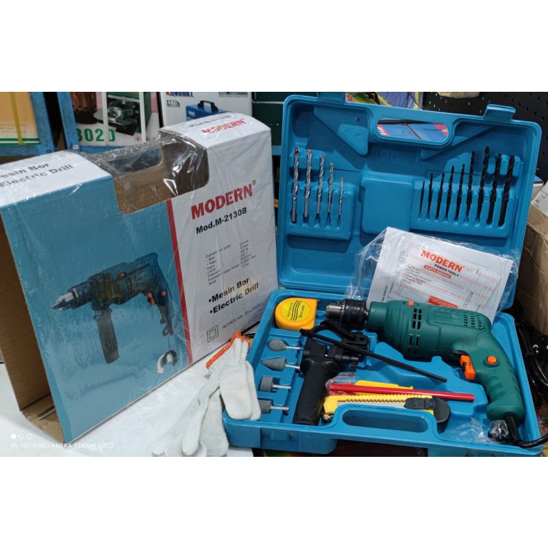 Bor Tembok Modern M2130B Impact Drill 13MM Set M-2130B Modern Bor Beton Box 13MM Set