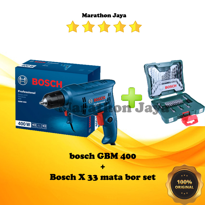 Bor listrik Bosch GBM 400 bor 10 mm besi kayu + X line 33 set